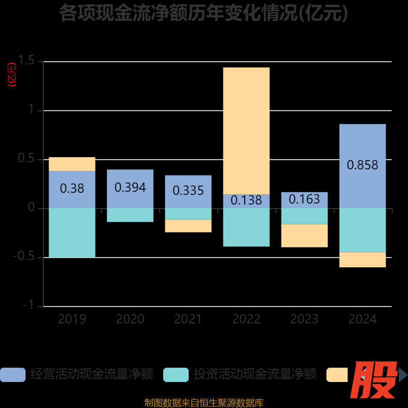截至2024年,公司经营活动现金流净额为8577.56万元,同比增长426.87%;筹资活动现金流净额-1548.32万元,同比增加808.28万元;投资活动现金流净额-4503.12万元,上年同期为-1640.18万元。