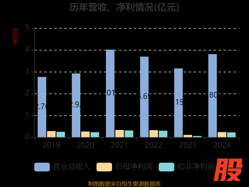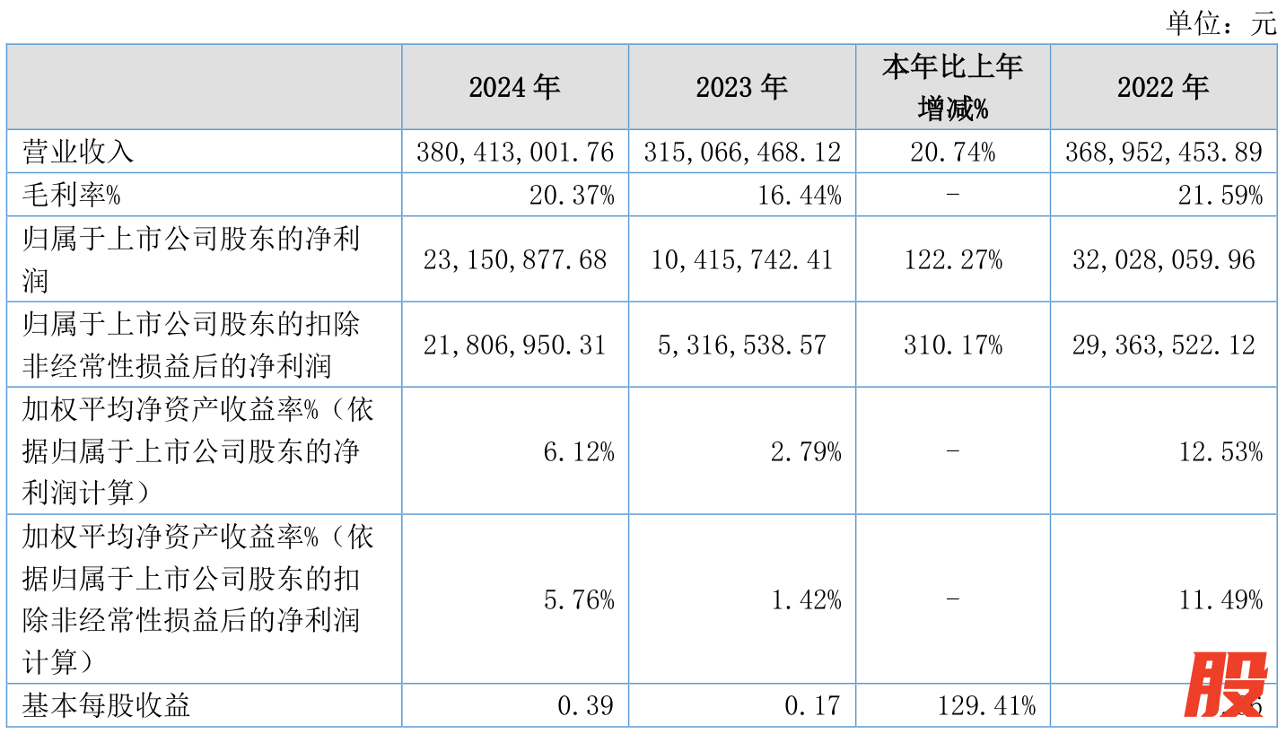 中证智能财讯夜光明(873527)4月25日披露2024年年度报告。2024年,公司实现营业总收入3.80亿元,同比增长20.74%;归母净利润2315.09万元,同比增长122.27%;扣非净利润2180.7万元,同比增长310.17%;经营活动产生的现金流量净额为8577.56万元,同比增长426.87%;报告期内,夜光明基本每股收益为0.39元,加权平均净资产收益率为6.12%。公司2024年度分配预案为:拟向全体股东每10股派现1.5元(含税)。