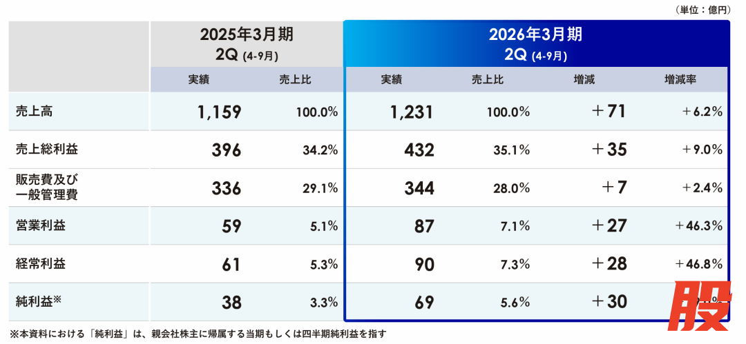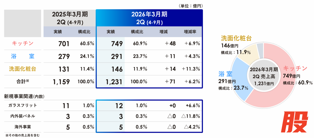 据财报,Takara Standard在2025年4-9月实现销售额1231亿日元(约合人民币59.25亿元,以9月30日收盘汇率计算,下同),同比增长6.2%,创历史新高;各项利润数据也较上年同期显著增长,其中营业利润增长46.3%至87亿日元(约合人民币4.19亿元),归属于母公司股东的净利润也大增79.0%至69亿日元(约合人民币3.32亿元),净利润占销售额总数从上年同期的3.3%上升至本期的5.6%。利润增长的主要原因是面向新建渠道的销售额增加,原材料成本下降,库存减少带来的物流费用削减及生产效率提高也是原因之一。